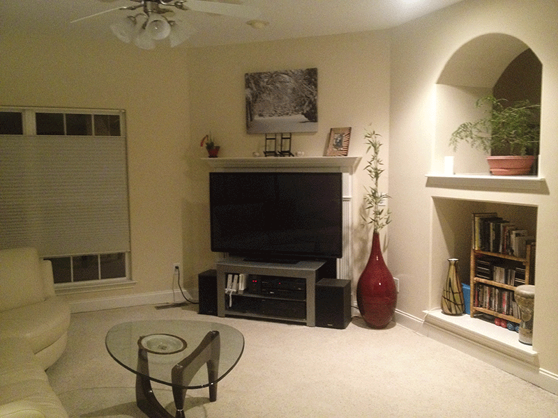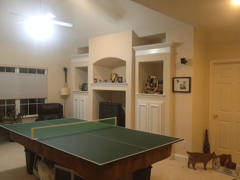 with a ping pong table top, a 40" flat screen TV, two entertainment