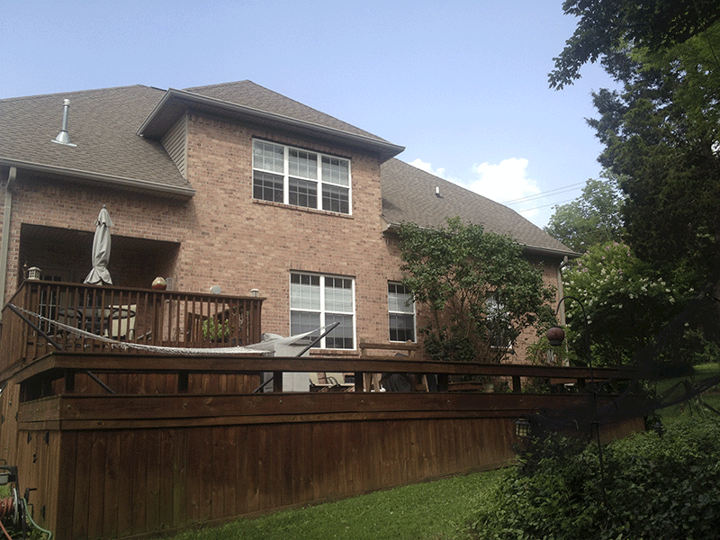leading to the covered porch and multi-level deck. Here you can enjoy the